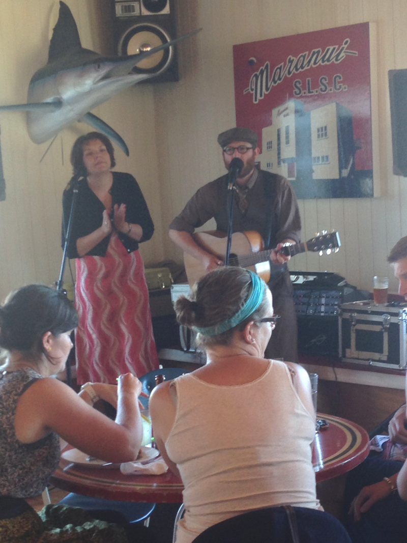 Ich habe dann den Rest des Nachmittags auf dem Rücken gelegen und in der Lyall Bay den Flugzeugen auf dem Airport beim Landen zugesehen. Zur Happy Hour sind wir dann noch ins „Maranui Cafe at Maranui Surf Life Saving Club“ auf ein Bier eingefallen. Dort spielte das Duo „Kim & Dusty“ („Once“, in Bild und Ton) ausdrücklich keine Weihnachtslieder. Unter Mitnahme von 1,25 Liter „Death from above“ (kürzlich erwähnt) aus dem „Garage Project“ findet gerade der vierte Advent mit einer (organic) Gemüsepfanne seinen Ausklang.