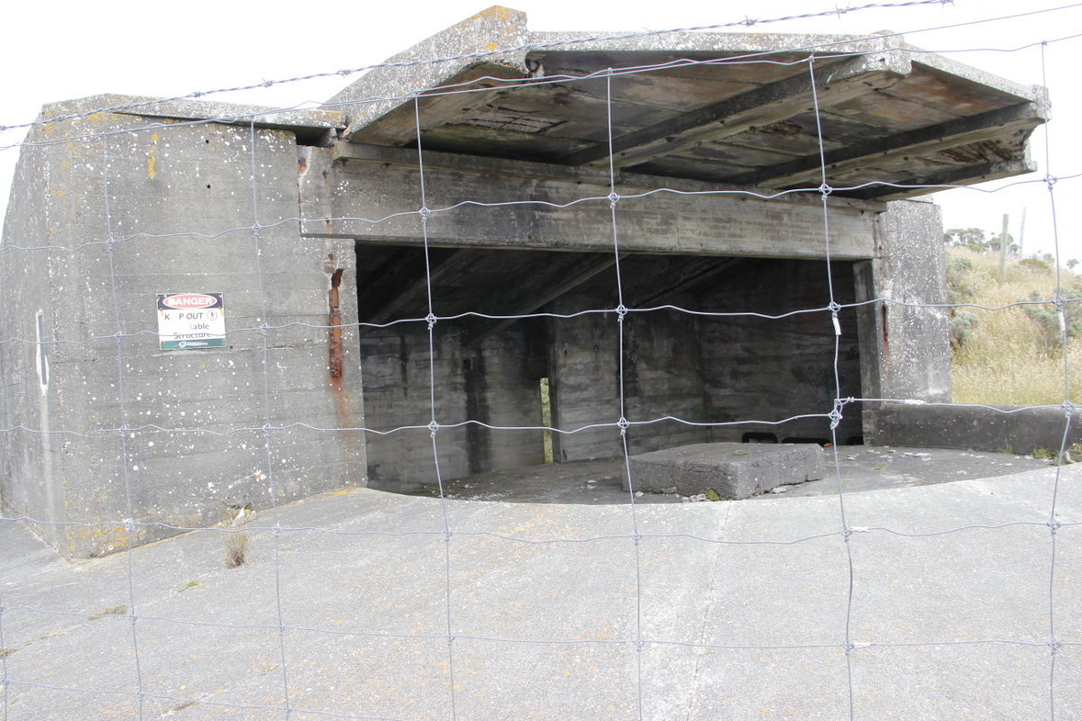Ein schmaler Pfad führt direkt auf den fast senkrecht abfallenden Klippen entlang. Nach ca. 45 Minuten steilem Anstieg stehen wir auf der Südwest-Ecke der North Islands. Gun Emplacement. Drei verbunkerte Geschütz Stellungen zeigen drastisch, dass auch hier unten (Tolkien: Auenland) der lange Schatten Mordors (Achsenmächte) im 2. Weltkrieg zu spüren war. Die deutsche Kriegsmarine(!) verminte 1940 NZ Häfen mit ca. 1400 Seeminen. Einige davon tauchen auch heute noch auf („WW2 mines found in sea off Auckland“, Friday March 07, 2014). Das Commonwealth war auf diese Situation (siehe Einnahme Singapores durch die Japaner) nicht vorbereitet. Man unternahm große Anstrengungen die Häfen zu verteidigen, immer eine Invasion (deutsch, später japanisch) vor Augen. Ein unvermuteter Stolperstein der Geschichte während einer Wanderung.