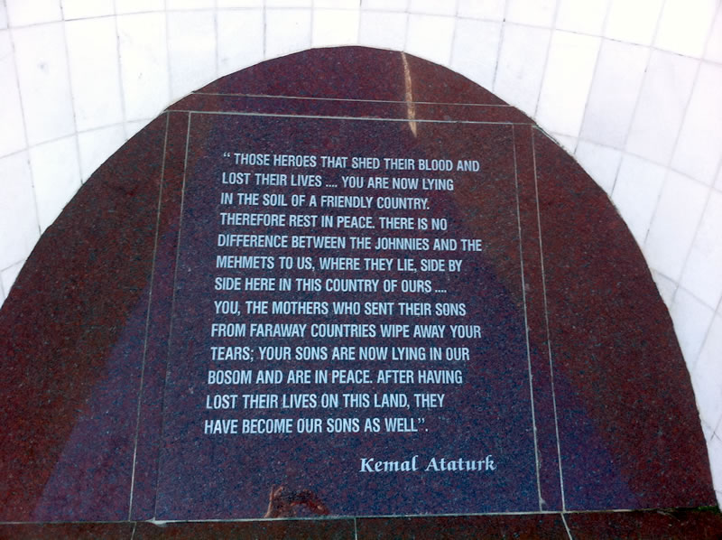 Durch Zufall entdeckten wir in Wellington das 1999 eingeweihte Atatürk(Ataturk)-Memorial. Dort lasen wir die sehr beeindruckenden Sätze von Atatürk zur Versöhnung mit seinen früheren Gegnern. Einen Besuchen wert und sehr beeindruckend.
