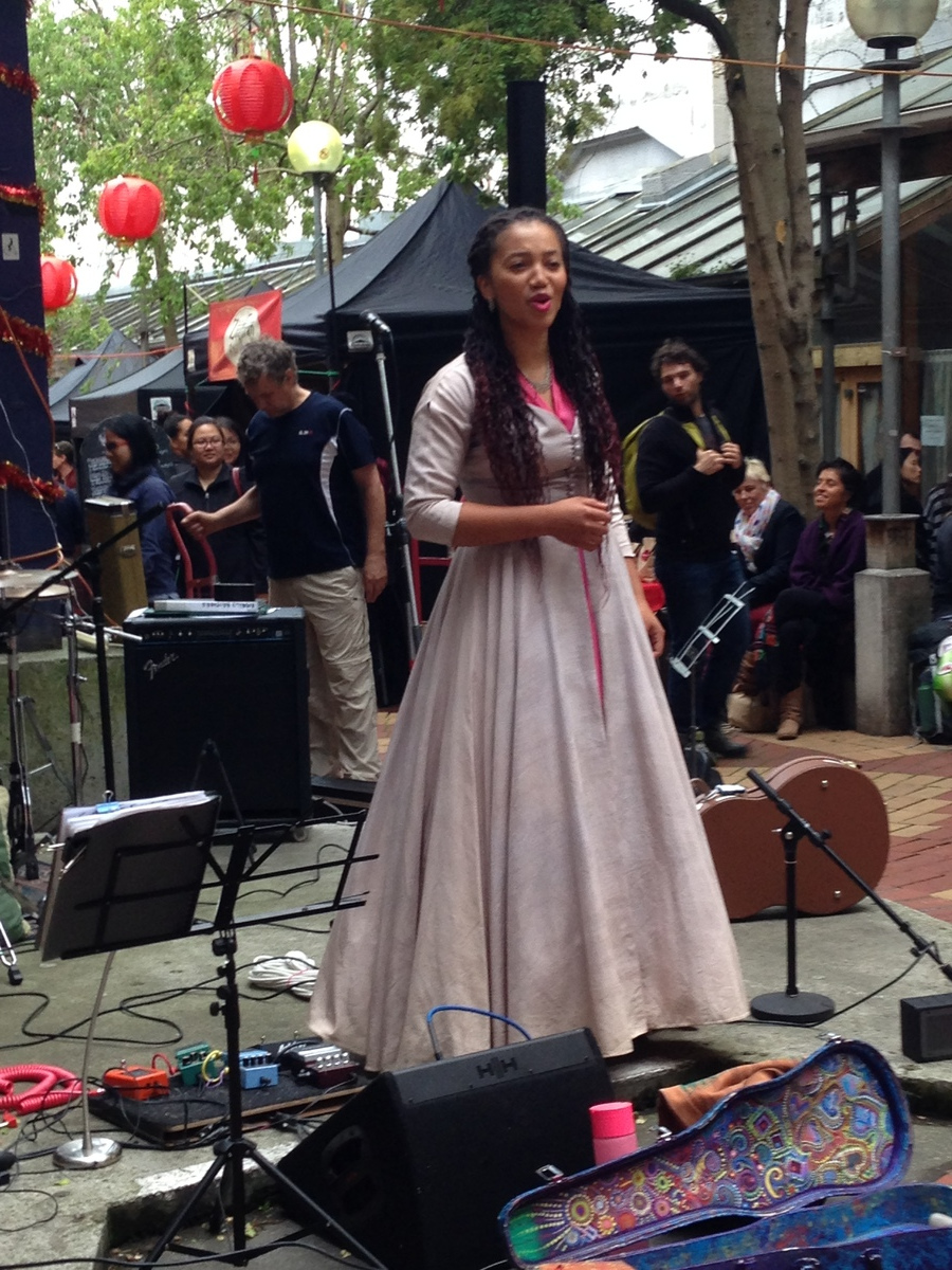 Europa ist auch vertreten Poffertjes aus Holland, ein Franzose (sah aber auch recht asiatisch aus) und last but not least..Fritz Wiener (Bavarain Sasuages). Die sahen aber (Bratwurst Lamb 7 NZ$) irgend wie nicht recht gültig aus. Dazu gab es als kulturellen Teil eine Opernsängerin,
