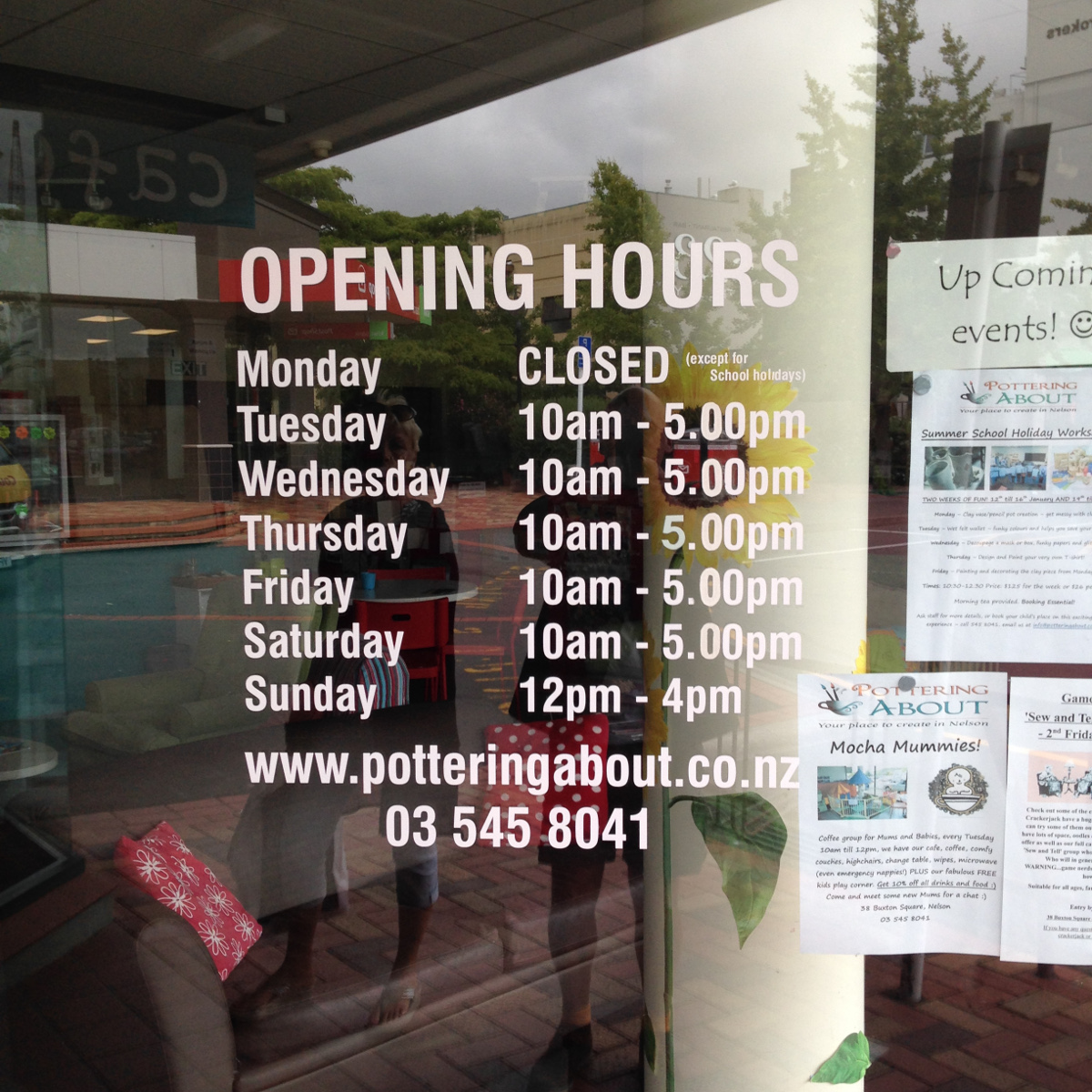 Öffnungszeiten in der Innenstadt von Nelson, keine Ausnahme, normaler Laden