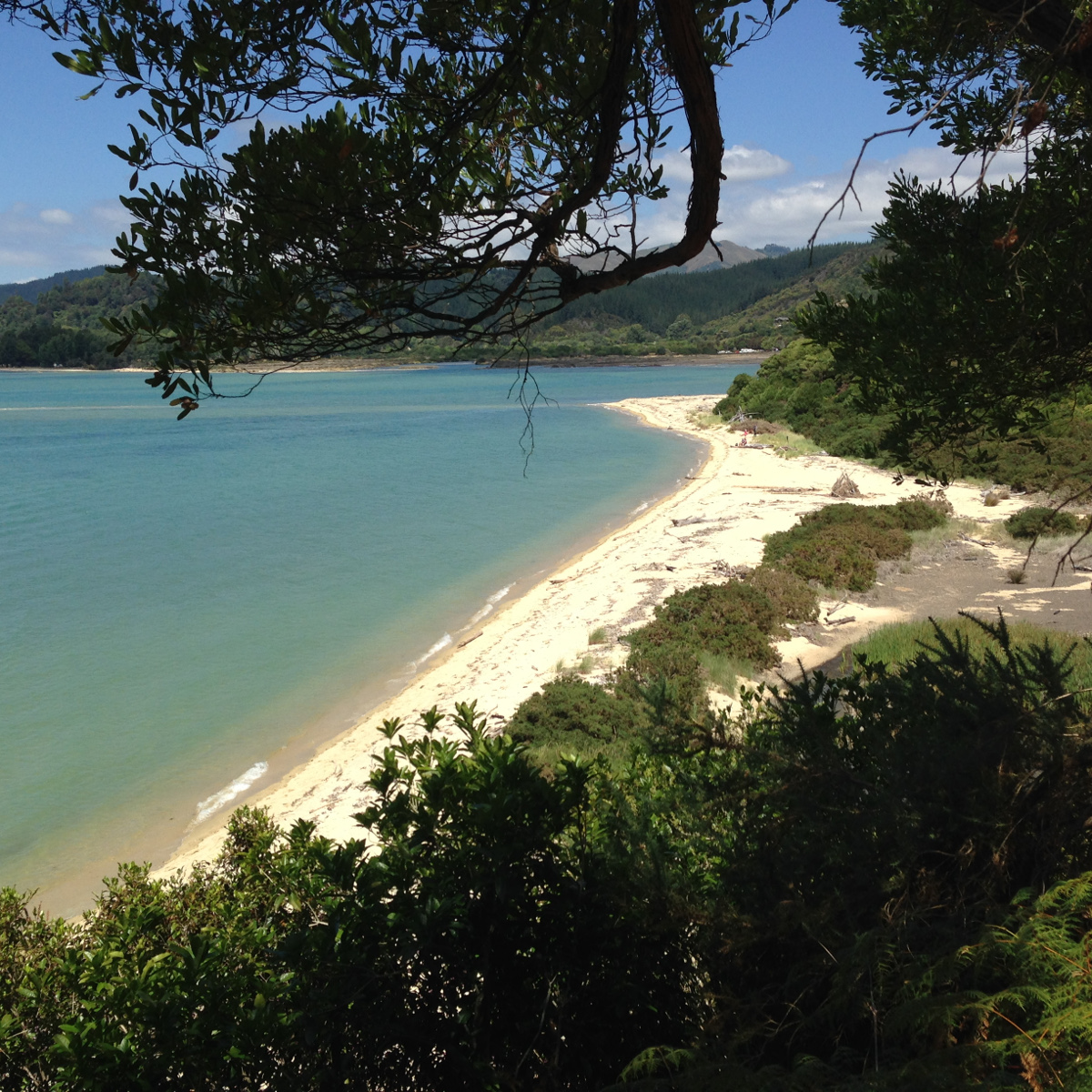 Irgend wann ist es uns dann gelungen, hinter Marahau den Eingang zum Nationalpark zu erreichen. Dort kann man auf einem Coastal Walkway durch den Urwald diverse Buchten besuchen. Hört sich erst mal wild romantisch an. Die ganze Angelegenheit findet jedoch im „Gänsemarsch“ statt.
