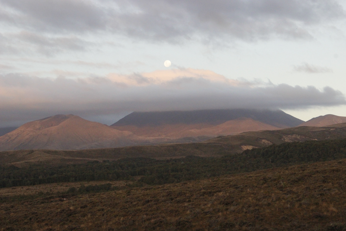 Nach unserm Essen sitzen wir mit einem Glas Wein in der Lobby vor einem großen Panoramafenster und schauen auf den perfekt symmetrischen Kegel des Vulkans Mt. Ngauruhoe.