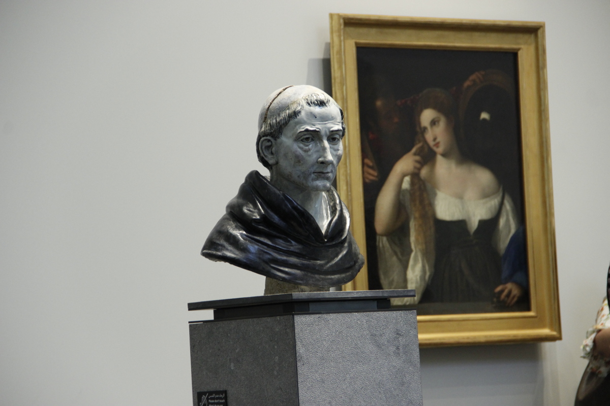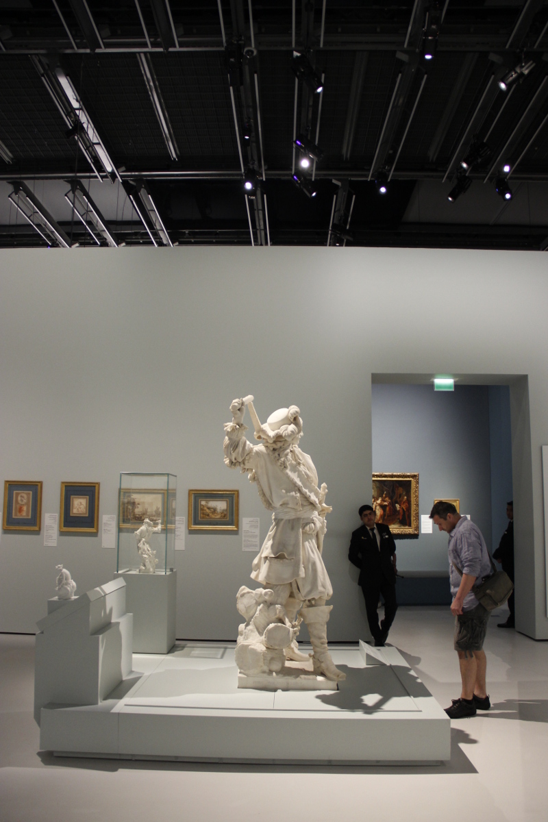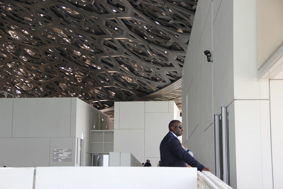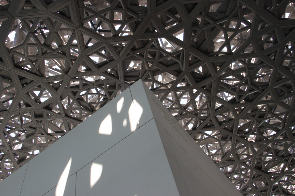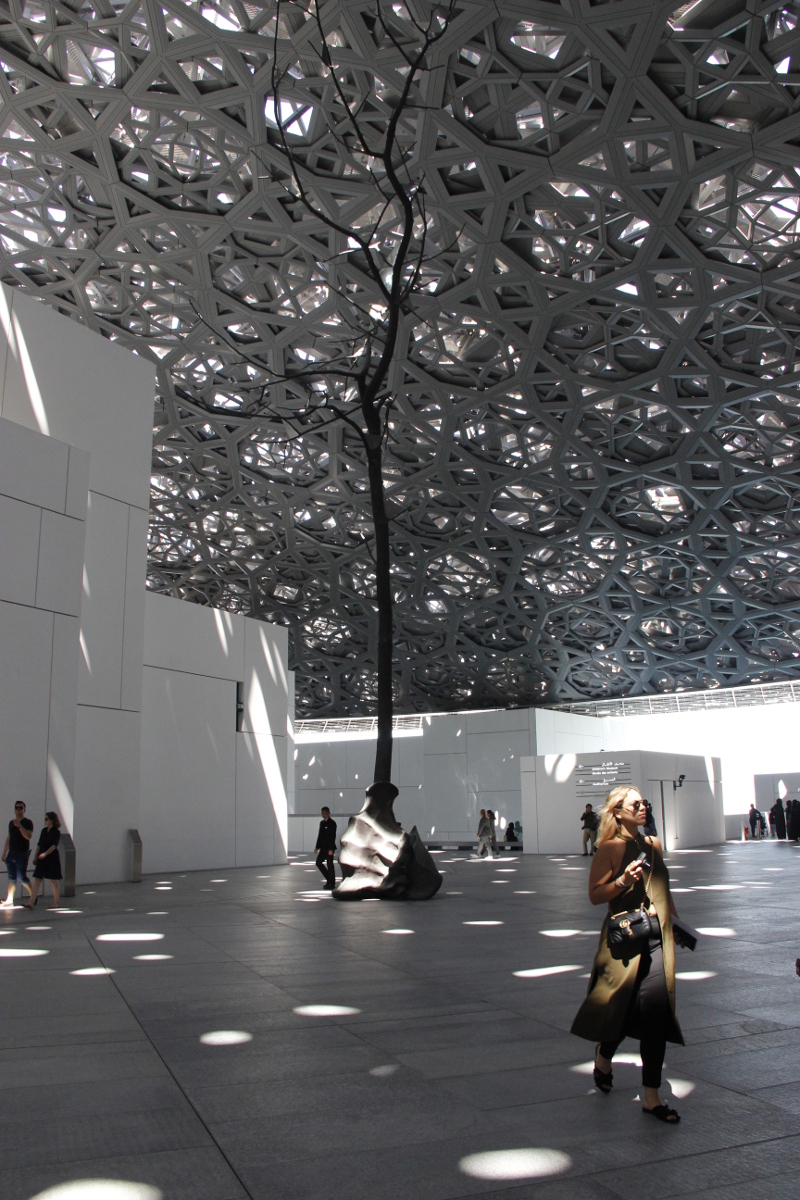 Wir überqueren mit dem Taxi eine Brücke auf dem Weg zu einer der vielen künstlichen Inseln. Auf Saadiyat Island entsteht ein neues Kulturviertel. Neben dem Louvre wird hier das Guggenheim Abu Dhabi und ein Nationalmuseum entstehen. Was wir bei unserer Ankunft sehen, ist sicherlich nach Angkor ein Highlight dieser Reise. Das Museum ist architektonisch schlicht überwältigend. Konzipiert ist die Sammlung des Louvre auf die Zeit von der Antike bis zum 21. Jahrhundert. Die Ausstellungen sind sorgfältig kuratiert (die Scheichs sind wahrscheinlich mit einer sehr großen Brieftasche einkaufen gegangen) und mit modernster Technik präsentiert.